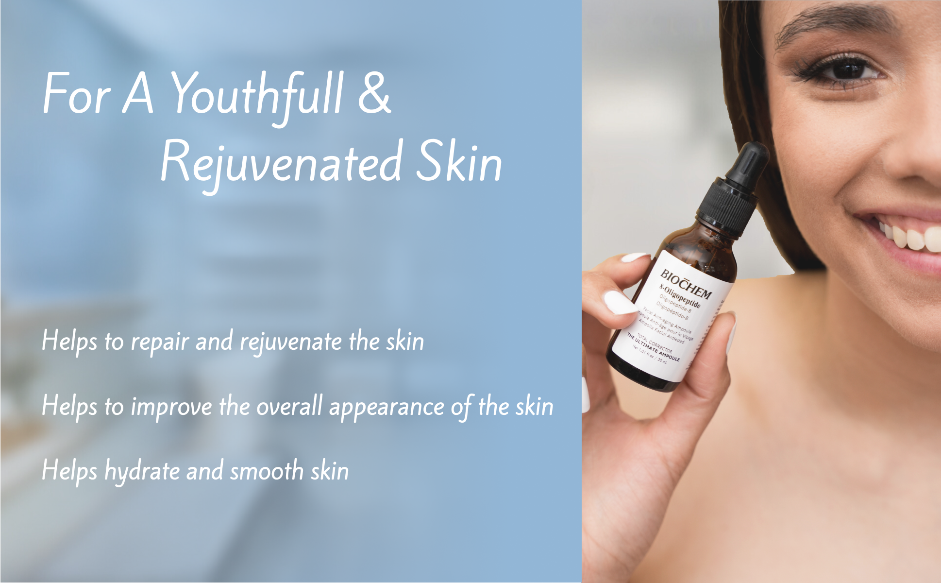 An age-supporting peptide serum that helps to repair the skin and increase hydration and collagen. Improve the look of signs of aging formed from repetitive facial expressions.