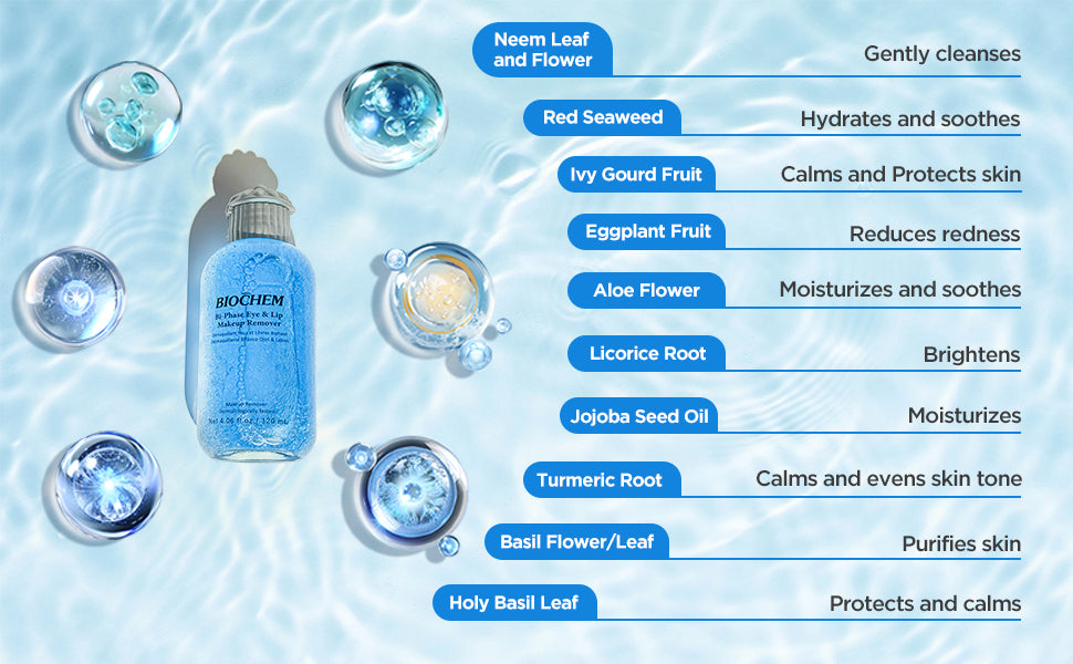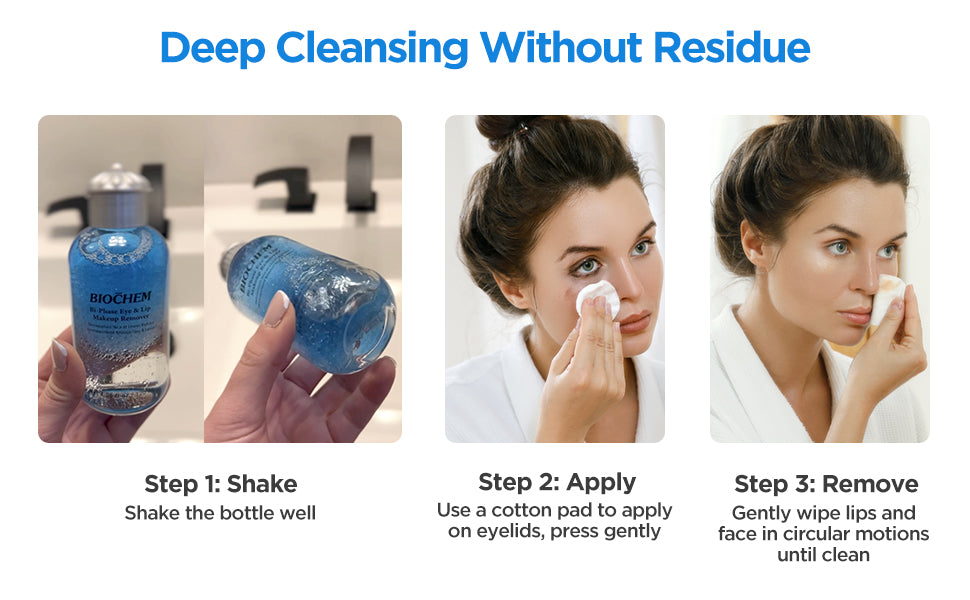 I loved Biochem Bi-Phase make-up remover. It is terrific at removing waterproof mascara which I was looking for. I also use it for my face and lips. The other good thing about this product is, there is no oily feeling after cleaning. Normally, such strong cleansers always leave an oily feeling.