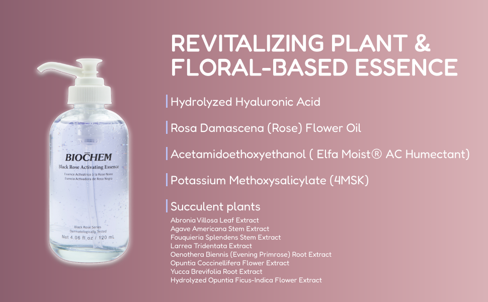 Key ingredients: Hydrolyzed Hyaluronic Acid, Rosa Damascena (Rose) Flower Oil, Acetamidoethoxyethanol [ ElfaMoist® AC Humectant ], Potassium Methoxysalicylate [ 4MSK ], Rosa Hybrid Flower Extract [Black Rose], Succulent Plants [Abronia Villosa Leaf Extract, Agave Americana Stem Extract, Fouquieria Splendens Stem Extract, Larrea Tridentata Extract, Oenothera Biennis (Evening Primrose) Root Extract, Opuntia Coccinellifera Flower Extract, Yucca Brevifolia Root Extract, Hydrolyzed Opuntia Ficus-Indica Flower Extract].