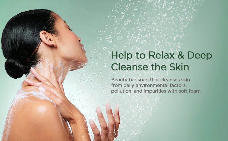 This gentle beauty bar soap washes skin from daily environmental factors, pollution, and impurities with soft foam. It helps to relax and deep cleanse the skin while leaving it with a fresh and soft feeling.